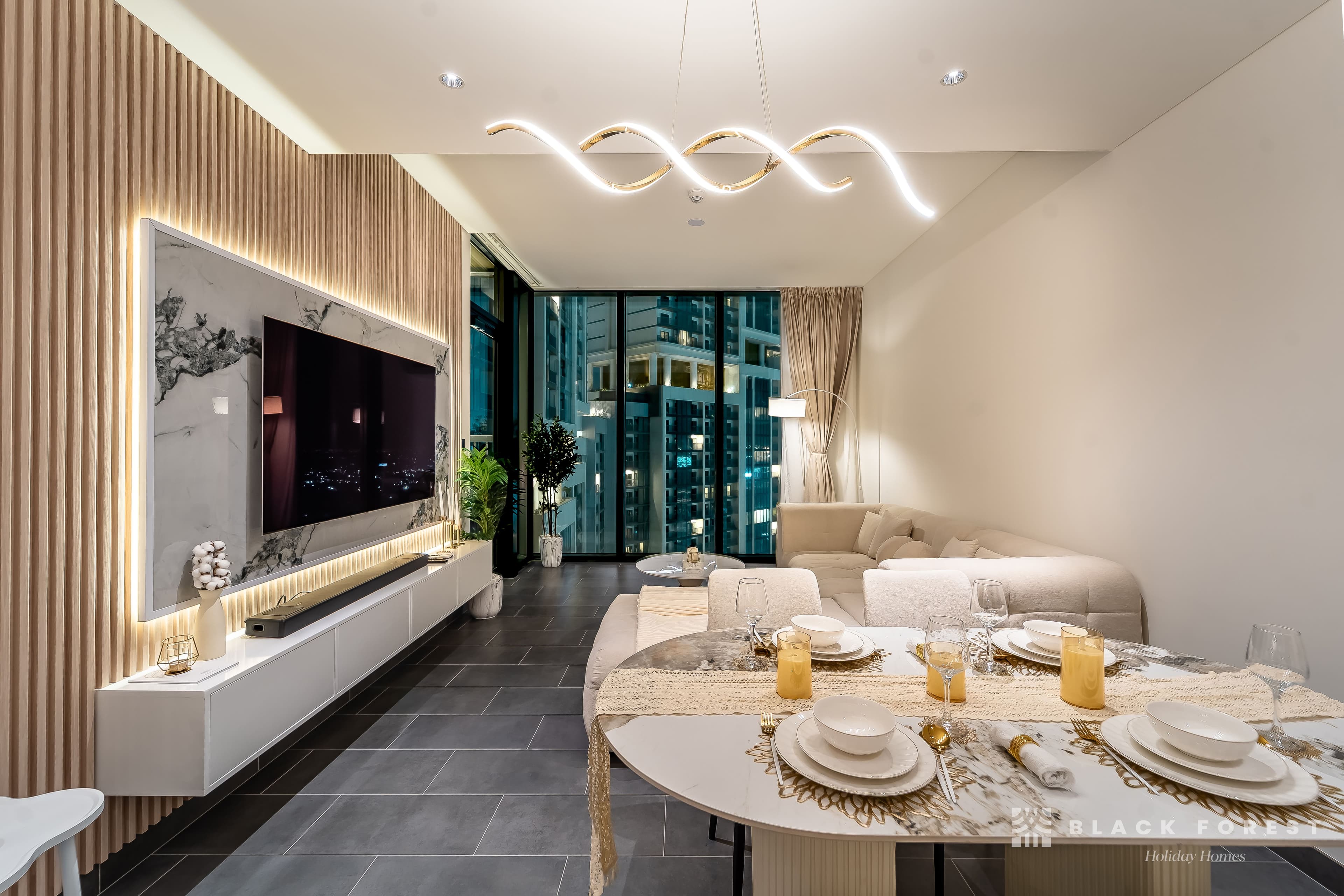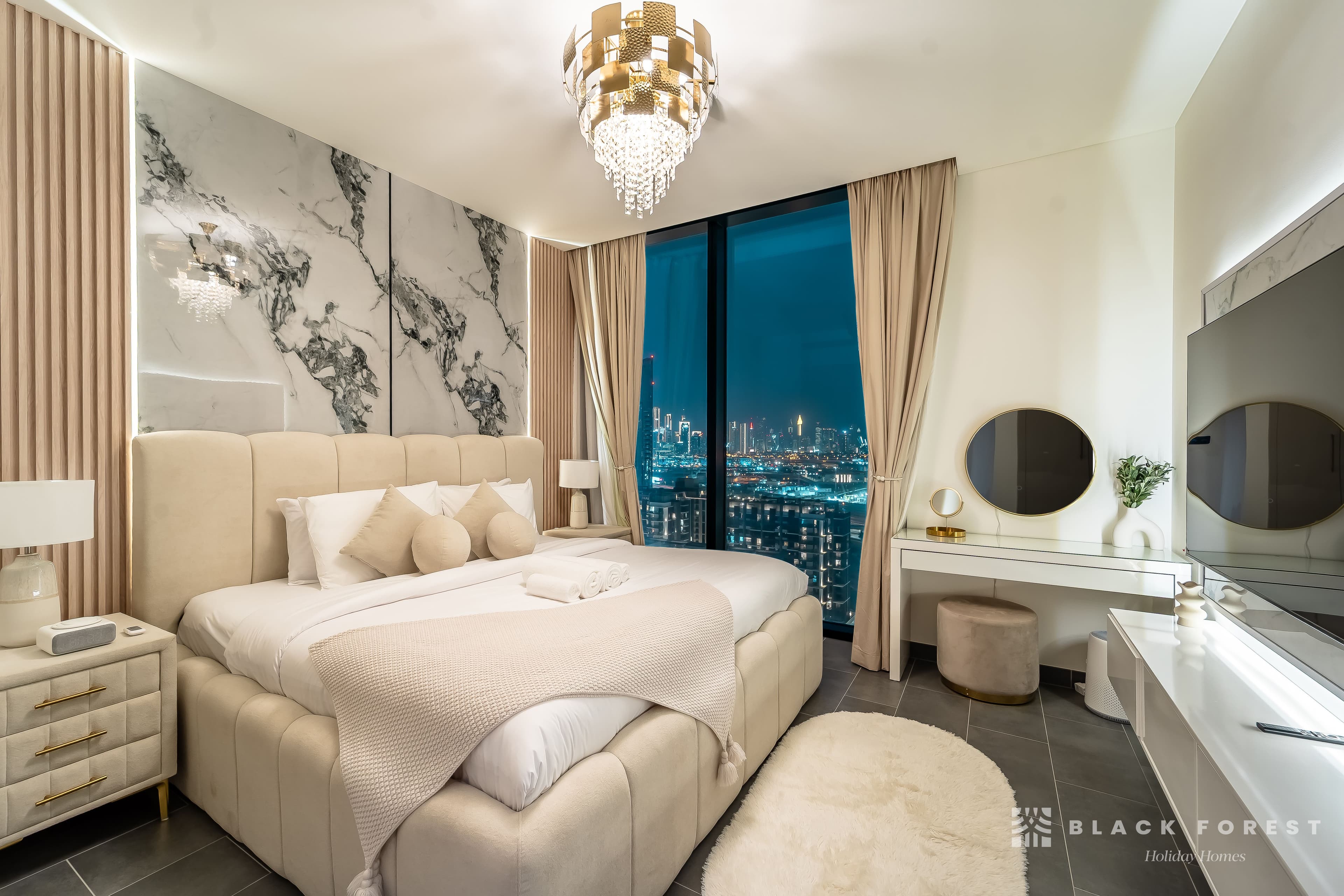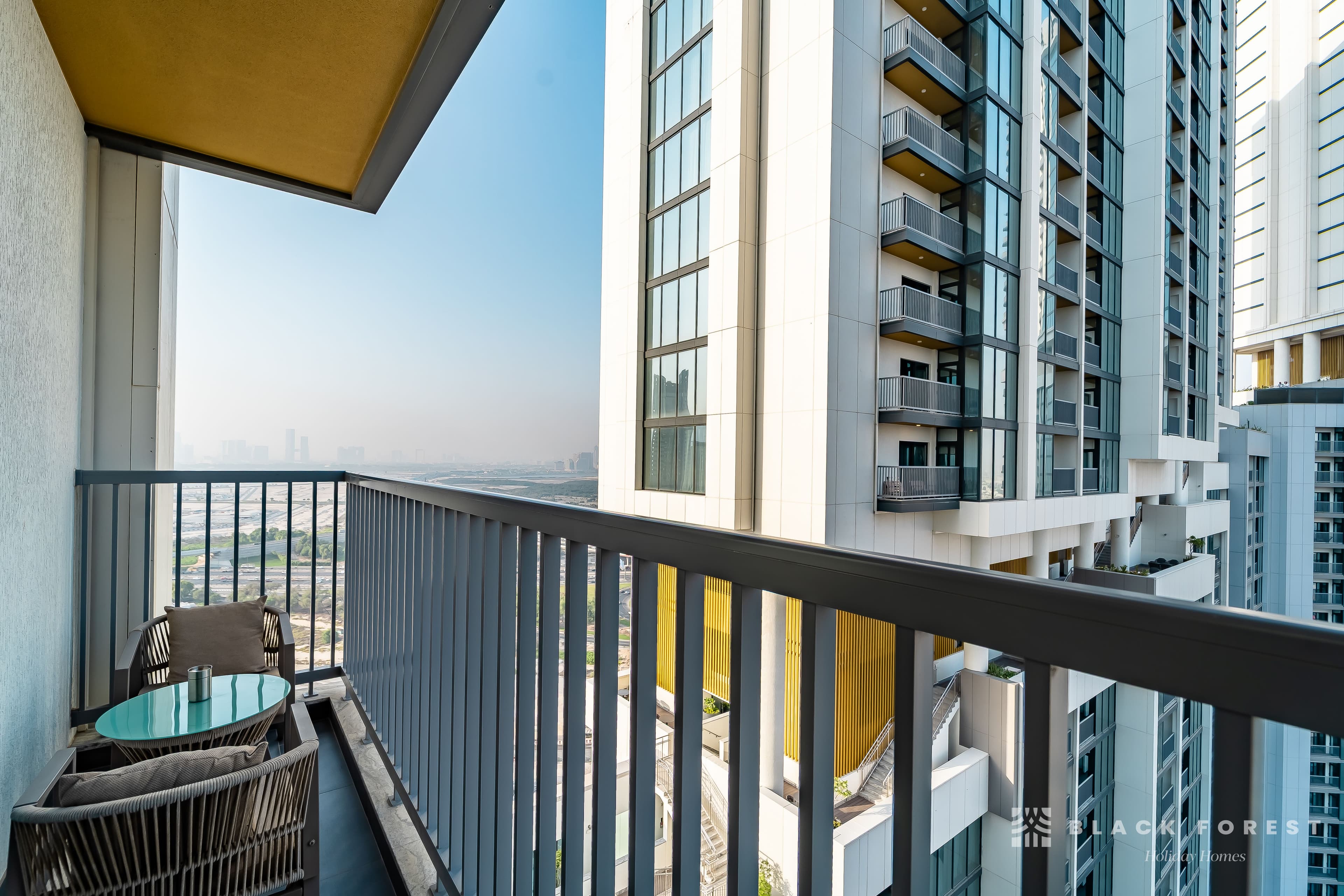 Experience spacious living on the 23rd floor of The Crest Residences in Sobha Hartland – one of Dubai's most exclusive addresses. This stylish 2-bedroom apartment offers plenty of space for comfort and combines modern design with timeless elegance. Sobha Hartland impresses with its central location near Downtown and Dubai Creek and combines urban proximity with the tranquility of a private community – ideal for couples, families or longer stays.